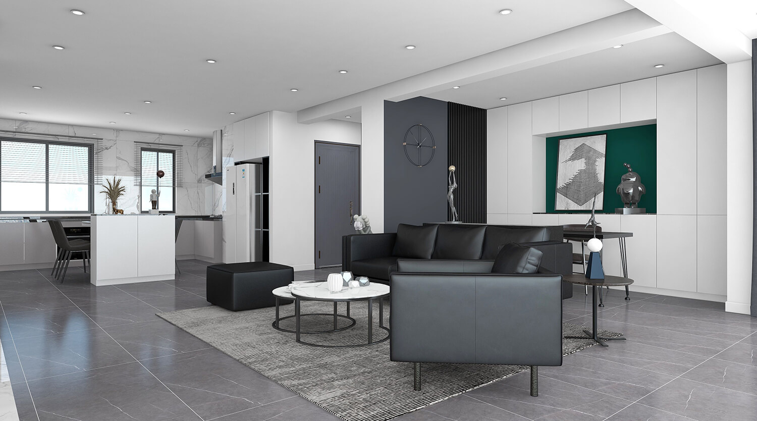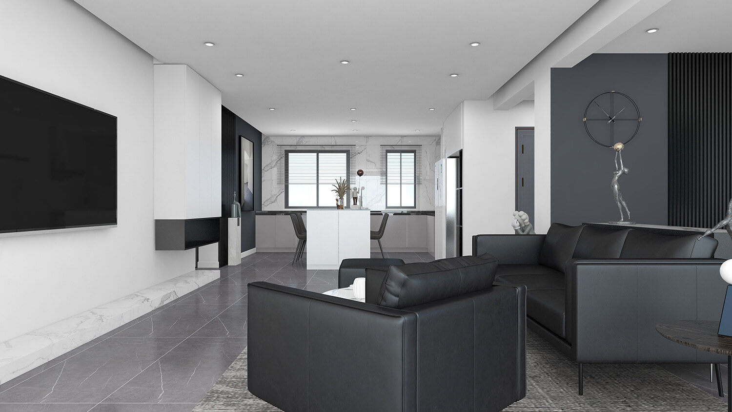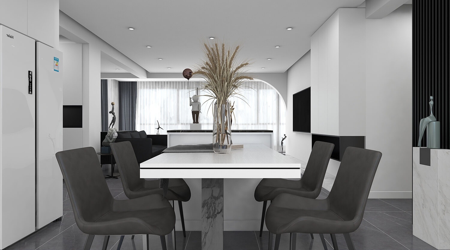 本案總面積為120㎡。設(shè)計(jì)師秉承簡潔、舒適的設(shè)計(jì)理念,整體以黑白灰為主,沒有多余的裝飾,線條簡單,室內(nèi)空間大方。簡約風(fēng)格的設(shè)計(jì)不是缺乏設(shè)計(jì)要素,而是一種更高層次的設(shè)計(jì)境界。在滿足功能需求的前提下,將空間、人及物品進(jìn)行合理精致的組合,用最洗練的筆畫,描繪出最簡潔素雅的空間效果。