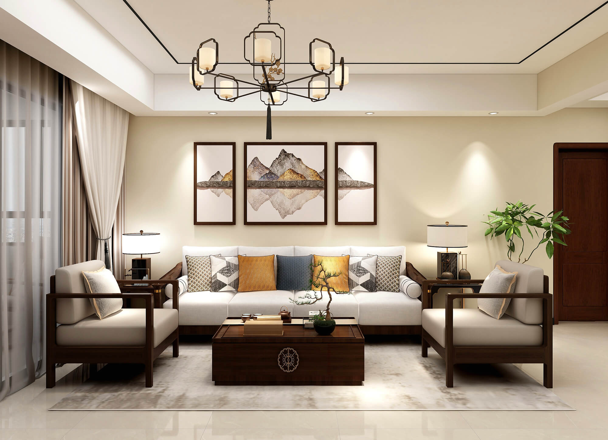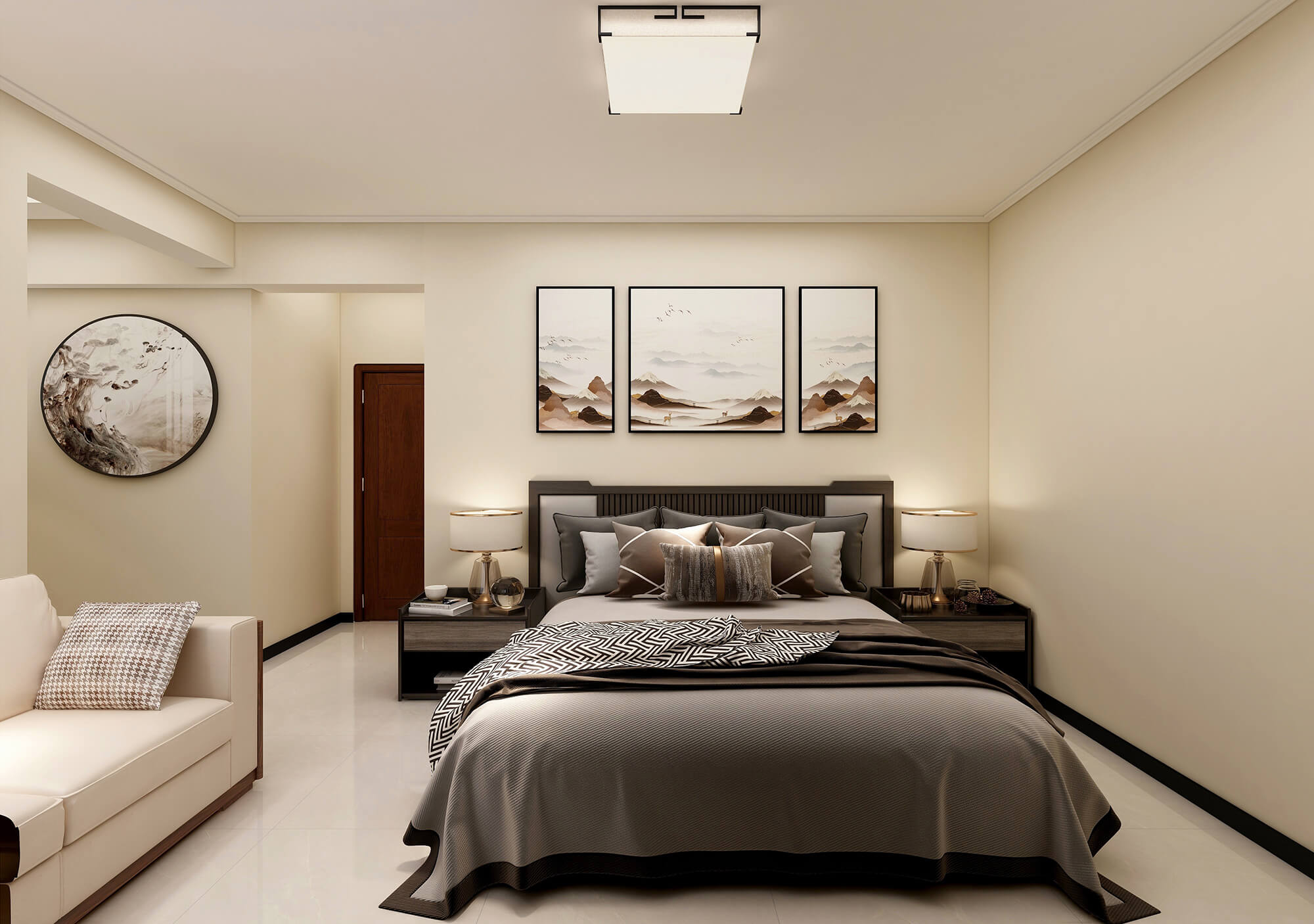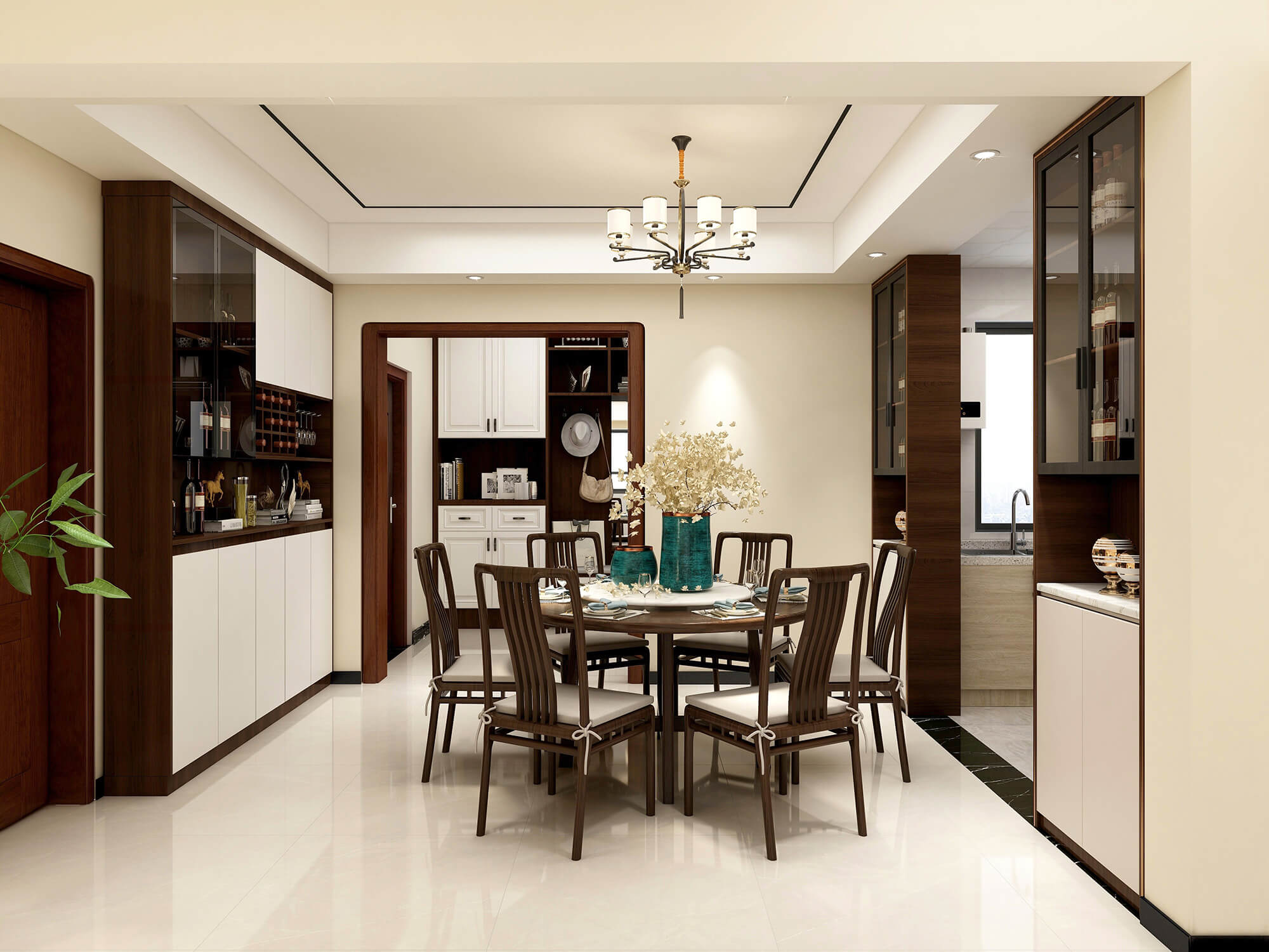 本案戶型為:4房2廳2衛,總面積143㎡。富有韻味的中式元素,在純粹潔凈的空間色調中,不斷映襯古韻的柔和禪韻。返璞歸真,將一份豁達與悠然的心境賦予其中,傳遞居住者對靜與雅的追逐。現代擺件的點綴,為整個空間增添現代感。