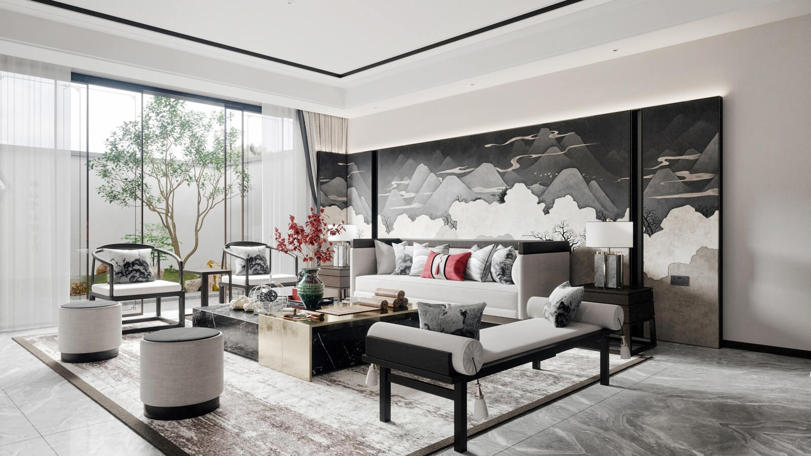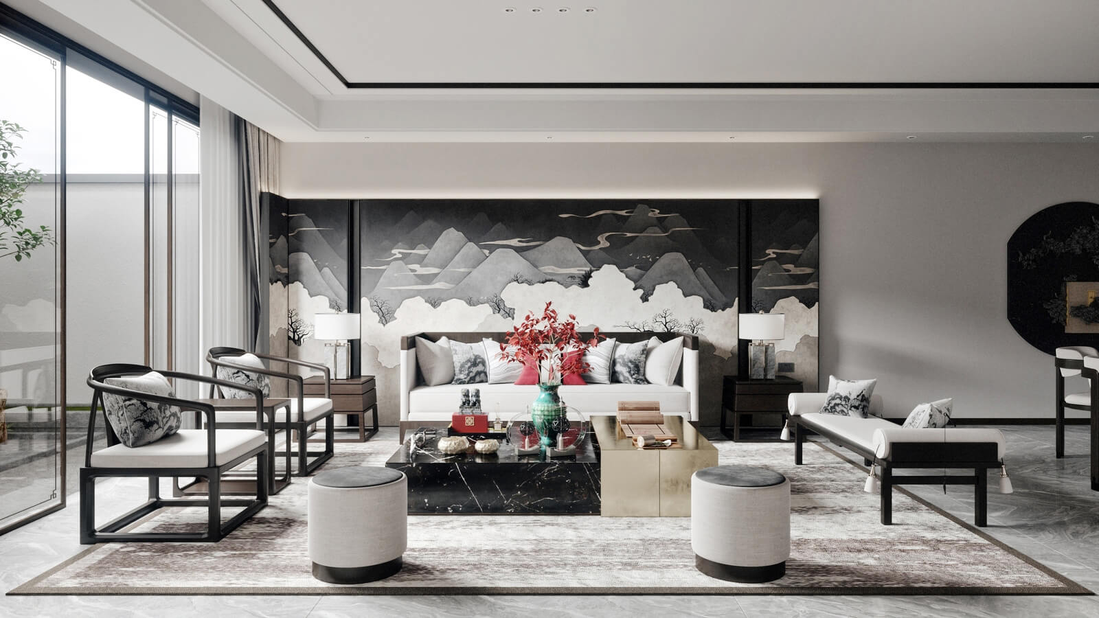 瀏覽量:1144設(shè)計(jì)師打破了人們對(duì)傳統(tǒng)中式風(fēng)格的固有觀念,加入了許多現(xiàn)代化的設(shè)計(jì)元素。其中,中國(guó)風(fēng)味一點(diǎn)兒也沒(méi)少。山水畫(huà),瓷器,深色桌椅,這些富含古典韻味的裝飾,完美地與現(xiàn)代化的空間融為一體,體現(xiàn)出靜謐的美感。