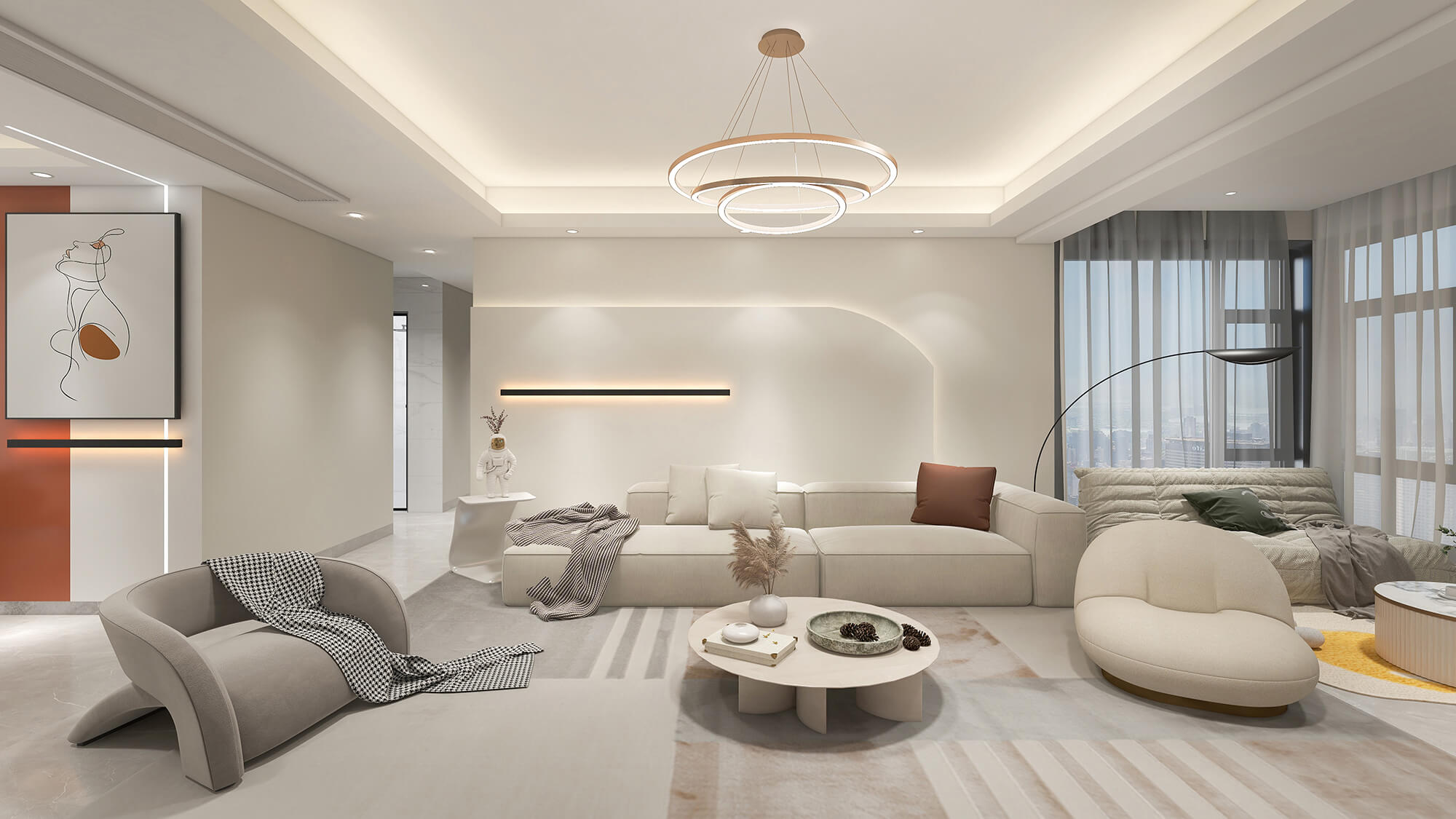 本案例戶型為:4房2廳3衛(wèi),總面積100㎡。極簡的設計構思,帶來身心的極大釋放,繁華喧鬧的城市仿佛被隔絕在外,寧靜的氛圍讓人放下心理的防線,更加自由自在。