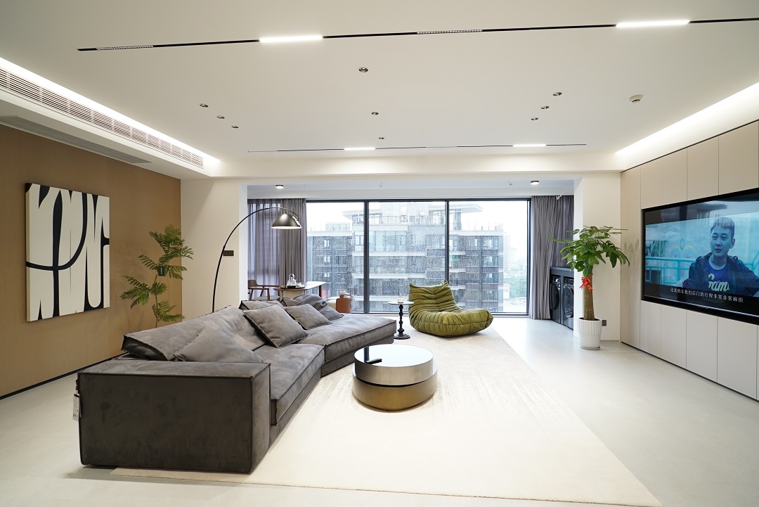 西園潤府136㎡的現代簡約風三居室,大橫廳+無主燈的設計,動區空間給人感覺寬敞又明亮。整體以高級灰為主基調的設計,加上優雅的軟裝設計,也讓整個家變得更加舒適有質感。