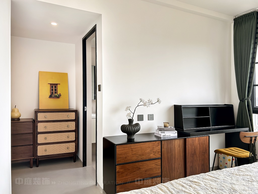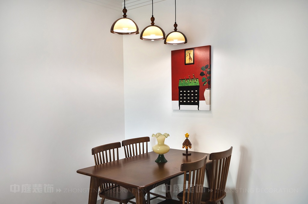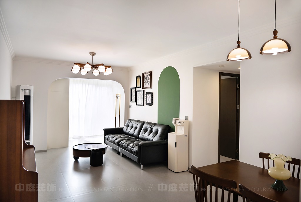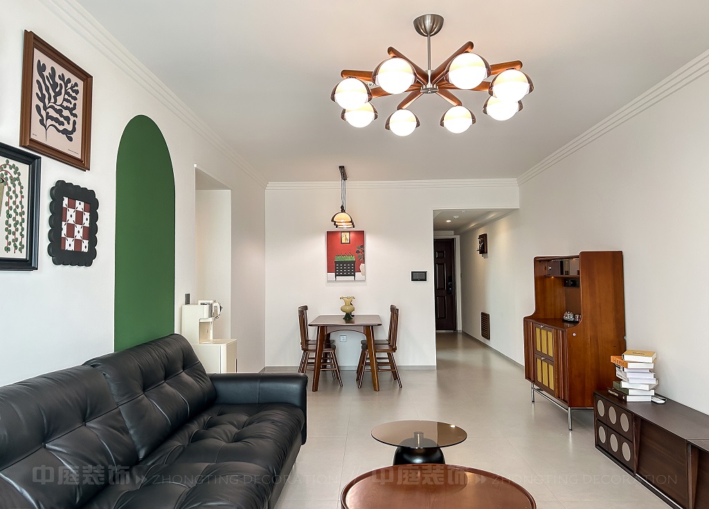 家里的色彩搭配很和諧,白色墻面搭配復古綠的裝飾,還有木質家具,像客廳的黑色皮沙發、復古感的吊燈,還有餐廳的木質桌椅,都很有質感。住在這里,日常起居會很有氛圍,不管是在客廳發呆,還是在臥室看電影,都能感受到那種溫馨又有格調的生活氣息,就像把復古的浪漫和現代的便利融合在了一起,特別適合喜歡有質感生活的人。
