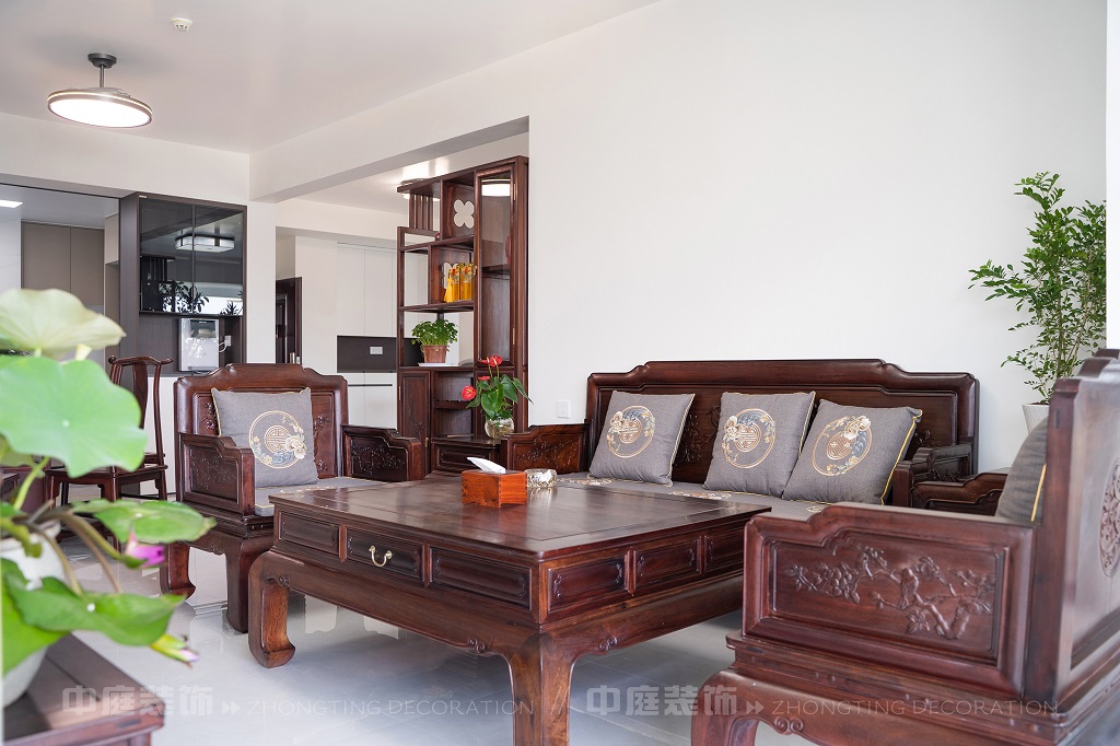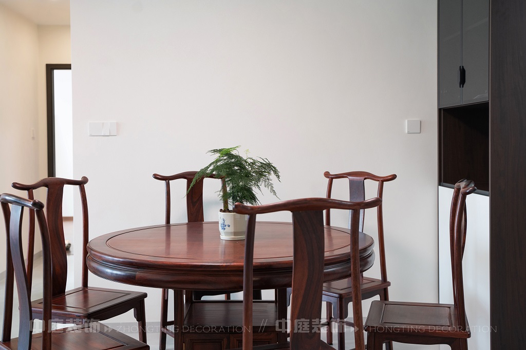 瀏覽量:187全屋以深色實(shí)木家具為主,雕花工藝精致細(xì)膩,盡顯中式家具的古樸質(zhì)感。搭配帶有傳統(tǒng)紋樣的抱枕,在細(xì)節(jié)處傳遞中式美學(xué)。空間中綠植點(diǎn)綴其間,與木質(zhì)家具相得益彰,營造出自然清新的氛圍。無論是客廳的沙發(fā)組合,還是茶室的茶桌茶具,亦或是餐廳的圓桌設(shè)計(jì),都在簡約的現(xiàn)代空間里,勾勒出中式家居的典雅與詩意。