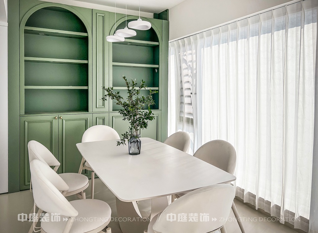 這一套綠意盎然的奶油風格好似把森林搬進了家,軟乎乎的奶白沙發搭配苔蘚綠毛毯,抱枕選了粉綠撞色,往上面一躺,一天的疲憊都被融化了!圓潤的白色組合茶幾,顏值與實用并存,氛圍感直接拉滿。墻面掛畫大葉綠植藝術畫,角落擺放鮮活綠植,將自然綠意融入空間。