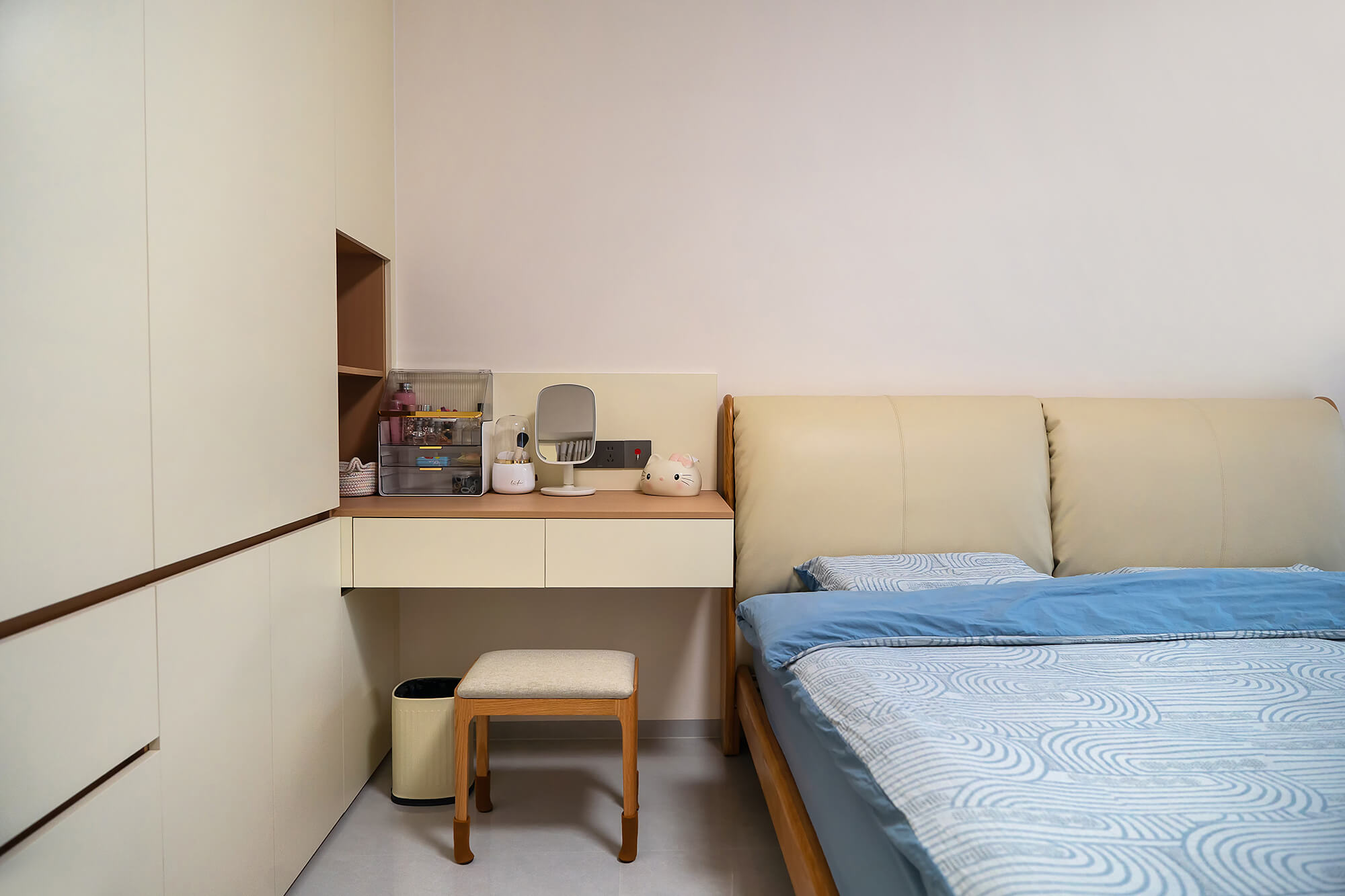 平衡 “實用與美觀”,簡化復雜造型,以簡潔線條、規整布局為核心,色彩上多采用中性色搭配少量亮色點綴。注重空間利用率,家具選型簡約大氣且兼顧功能性,裝飾元素少而精(如簡約掛畫、綠植),營造清爽、通透、適配日常居住的舒適空間。