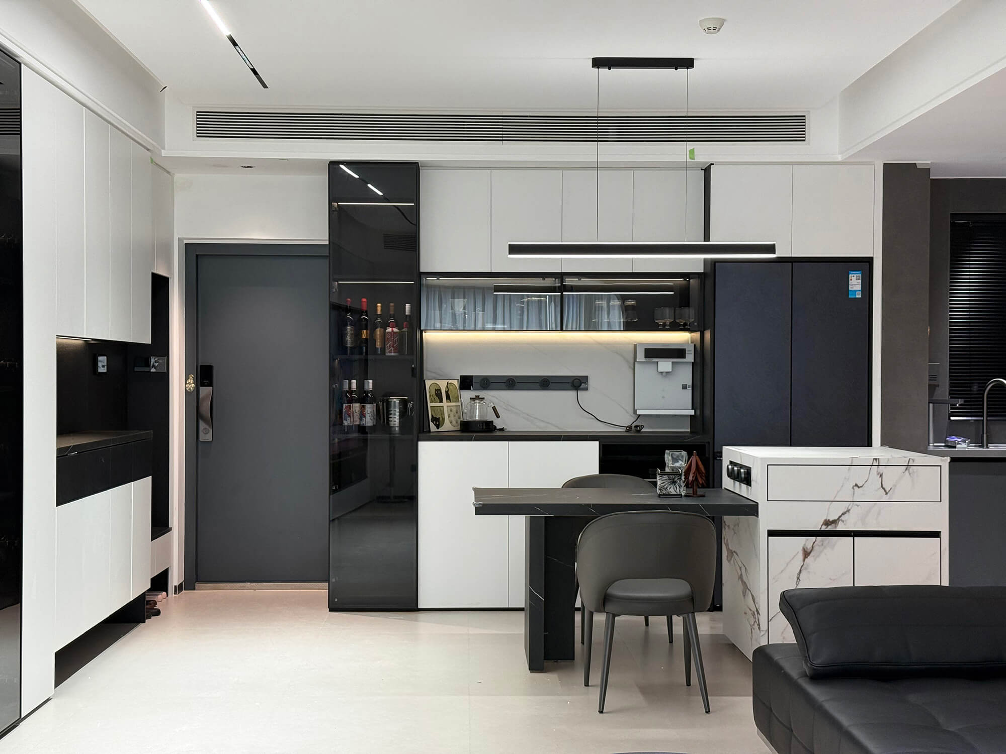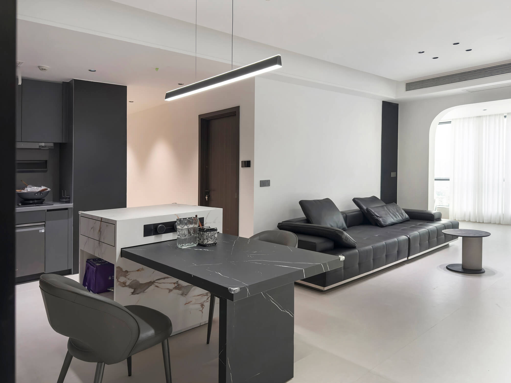 比極簡風格更強調 “去繁就簡”,剝離所有非必要元素,僅保留空間核心功能與最簡潔的視覺表達。線條極致利落,色彩以單色調或雙色對比為主,材質偏好純粹質感,追求 “空而不空” 的境界,傳遞寧靜、專注、無干擾的純粹空間體驗。